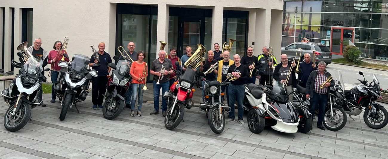 Seit 2003 gibt es in Bayern das Format: „Bike and Brass“ – ins Leben gerufen von Pfarrer Frank Möwes, momentan an der Straubinger Versöhnungskirche. Die Idee war, tagsüber auf dem Motorrad unterwegs sein und abends gemeinsam zu musizieren, alles mit dem Ziel, einen festlichen Abschlussgottesdienst musikalisch vorzubereiten.